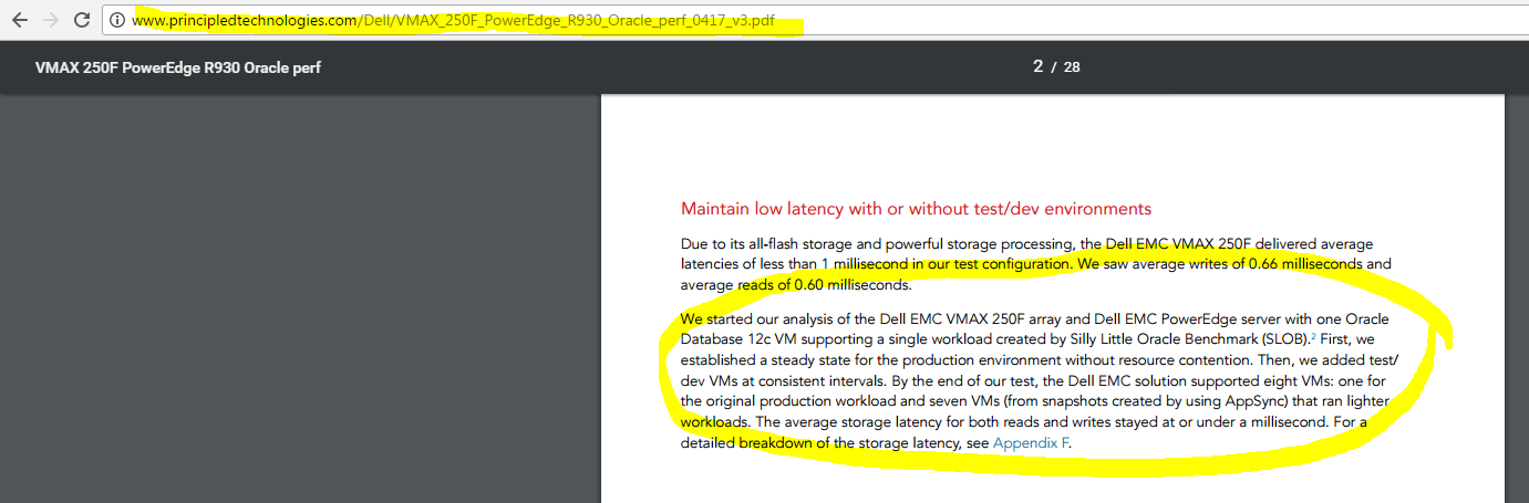 This paper is a partner effort with Principled Technologies and it showcases a VMAX 250F All-Flash Array performance characterization with SLOB.