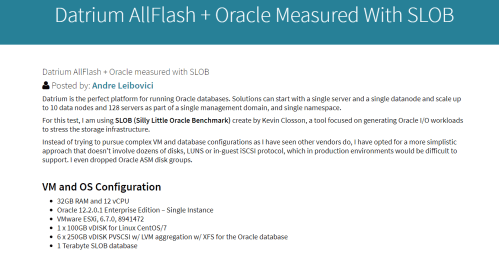 Datrium have posted SLOB testing results for their Datrium AllFlash suite.