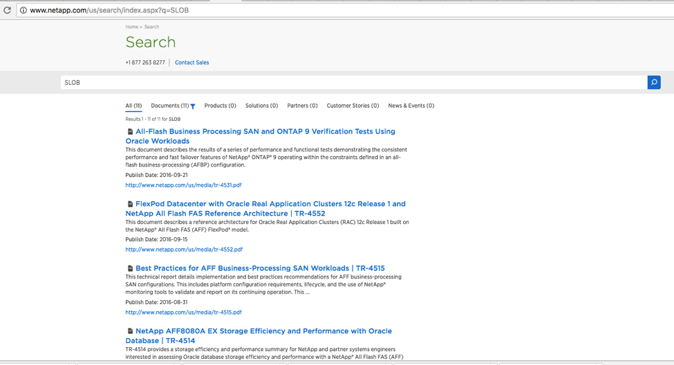 When searching the NetApp main webpage I find 11 articles that offer SLOB testing results: