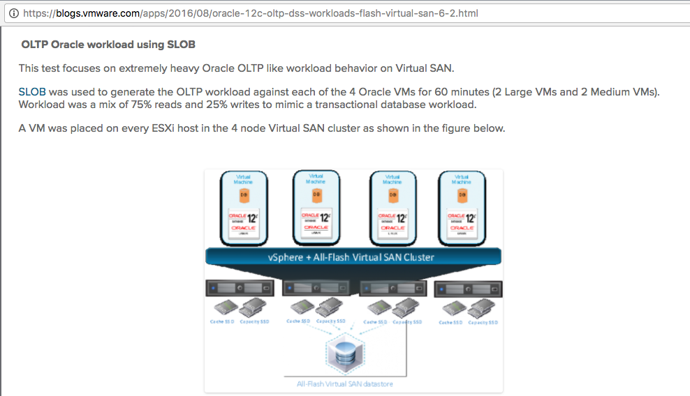 Thanks to my old friend Sudhir Balasubramanian for sending links to several other of his VMware blogs featuring excellent performance characterizations using SLOB and the SLOB Method.