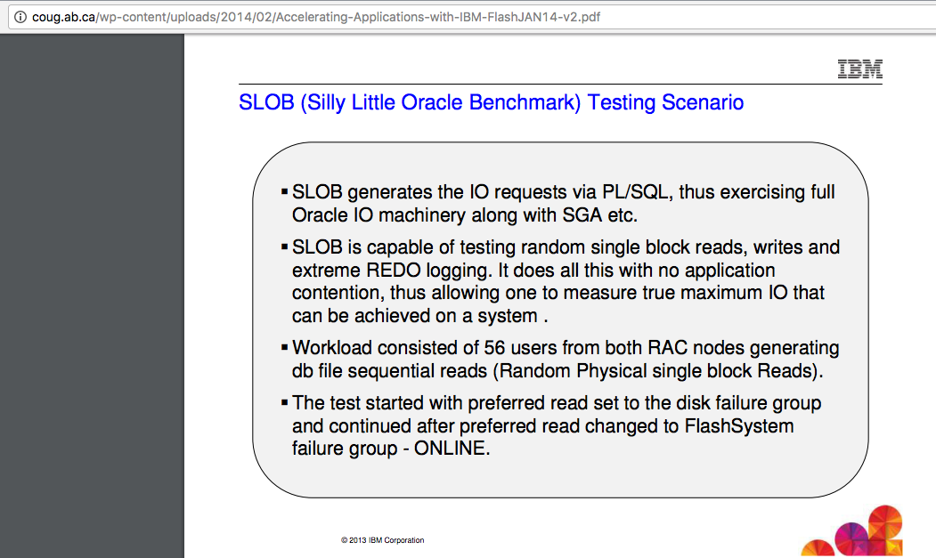There is an IBM “8-bar logo” presentation showing SLOB results at the following link: