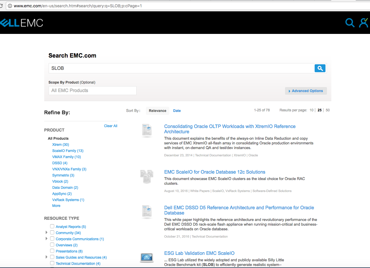 I took a moment to search the main DellEMC website for articles containing the word SLOB and found 76 such articles!