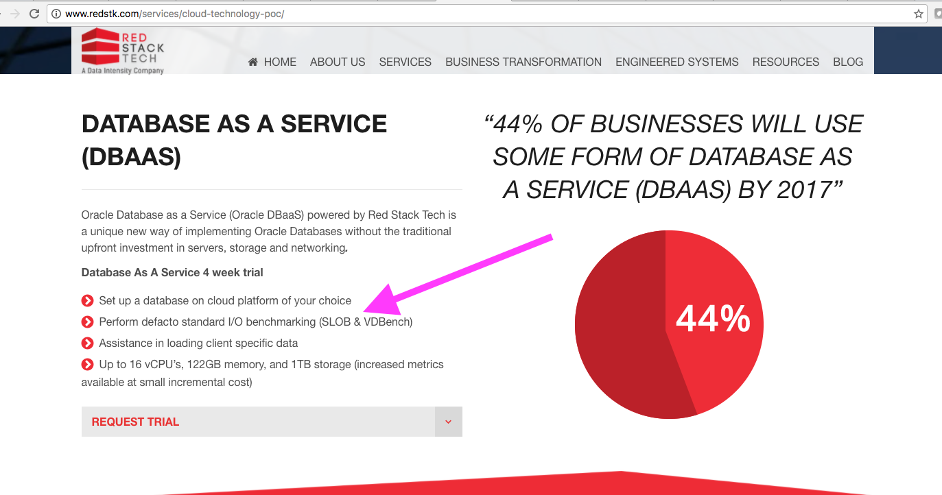 Red Stack Tech offer DBaaS and even showcase the ability to test the platform for I/O suitability with SLOB:
