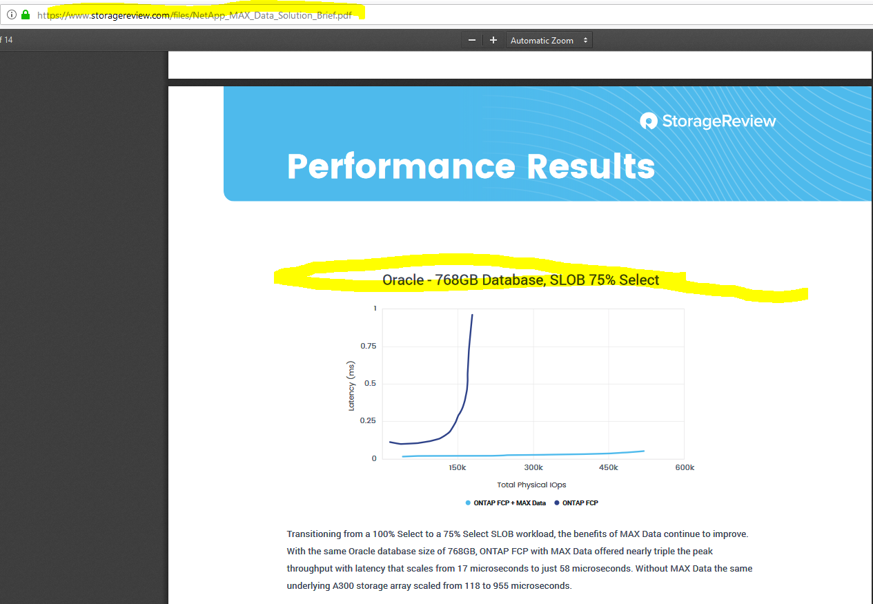 In December 2018, storagereview.com reported that NetApps’ Memory Accelerated Data (MAX Data) has been proven by SLOB to offer “dramatic” impact on database workloads. There is a paper available to download at the StorageReview site: https://www.storagereview.com/files/NetApp_MAX_Data_Solution_Brief.pdf