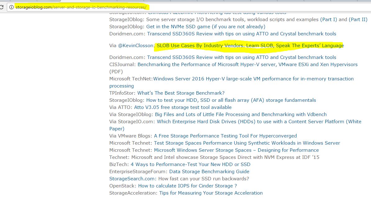 9 Responses to “SLOB Use Cases By Industry Vendors. Learn SLOB, Speak The Experts’ Language.”