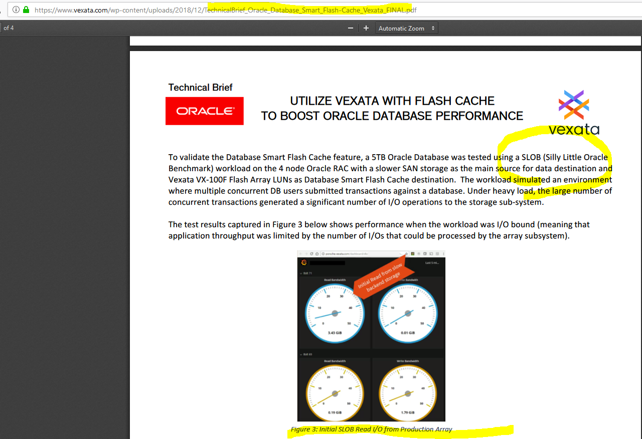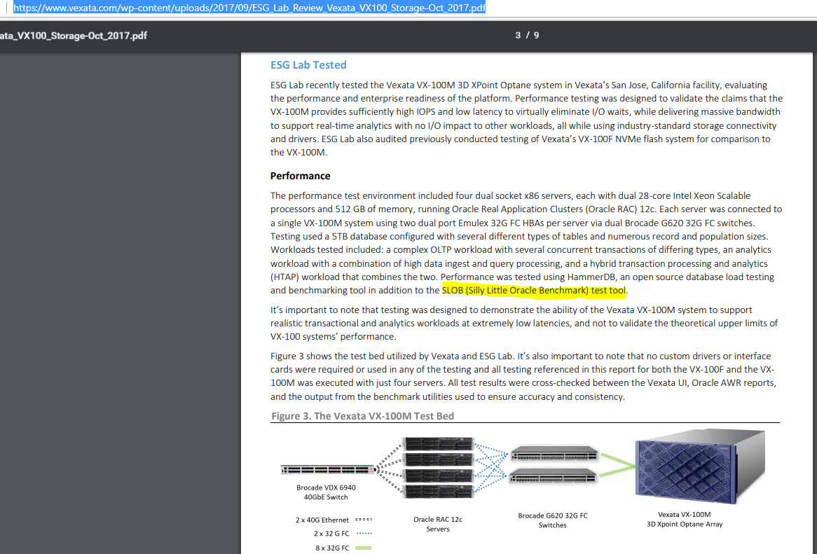 The following are links and screenshots from various vendors showing some of their SLOB use cases. Generally speaking, if you are shopping for modern storage–optimized for Oracle Database–you should expect to see SLOB results in a vendor’s literature.