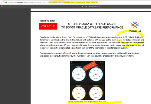 Vexata have updated their literature to include a SLOB proof point of leveraging their all-flash storage via Oracle Database Smart Flash Cache in their paper entitled UTILIZE VEXATA WITH FLASH CACHE TO BOOST ORACLE DATABASE PERFORMANCE available here: