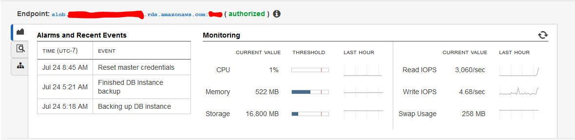 Figure 12: Screen Shot of AWS Console. RDS Performance Metrics.